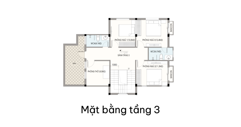 Diện tích trung bình: 75 – 150m2.