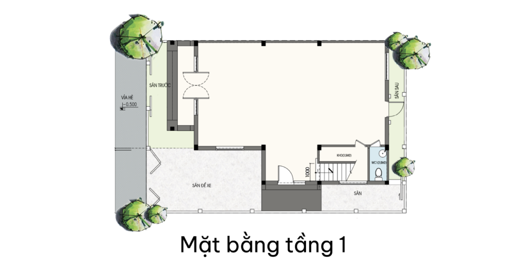 Lối đi sau nhà rộng 6m, vỉa hè rộng